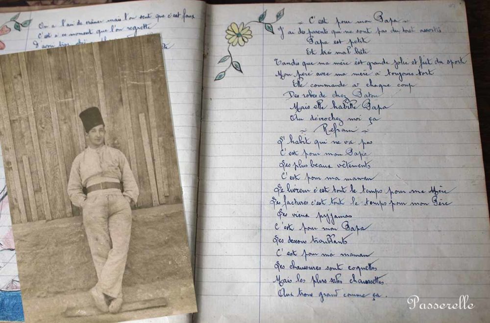 Sa femme, ma grande-tante, avait plusieurs cahiers où elle écrivait elle tous les poèmes qu’elle aimait….