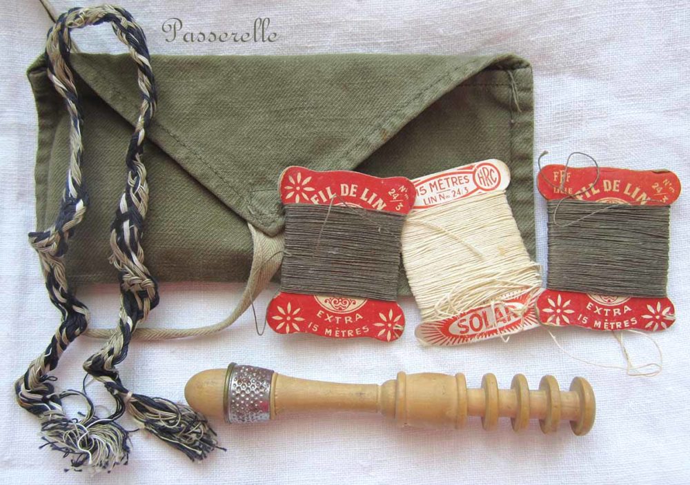 Je regrette vraiment de ne pas parler allemand, ça aurait été fort intéressant de chercher sur ce thème pour faire le parallèle. Je suis convaincue que ce type d’objet a existé aussi pour les soldats en Allemagne, ou l’équivalent, car lorsque le besoin est là, l’outil se crée ! Sébastien, tu restes en alerte ? Je trouverais passionnant d’identifier l’équivalent allemand de cette cousette.