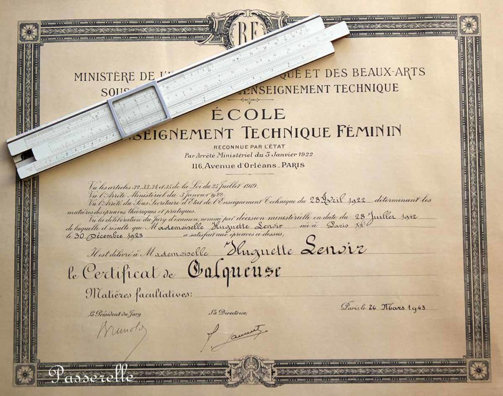 Elle y passe deux ans à se former au métier de calqueuse. C’est une spécialité qui a disparu avec l’évolution de la profession vers le numérique mais si l’on se réfère aux conventions collectives de l’époque, la dessinatrice-calqueuse est celle qui calque proprement à l’encre ou au crayon, traits, lettres, chiffres bien dessinés. Sait copier un dessin. Ne fait pas d’erreur de copie.