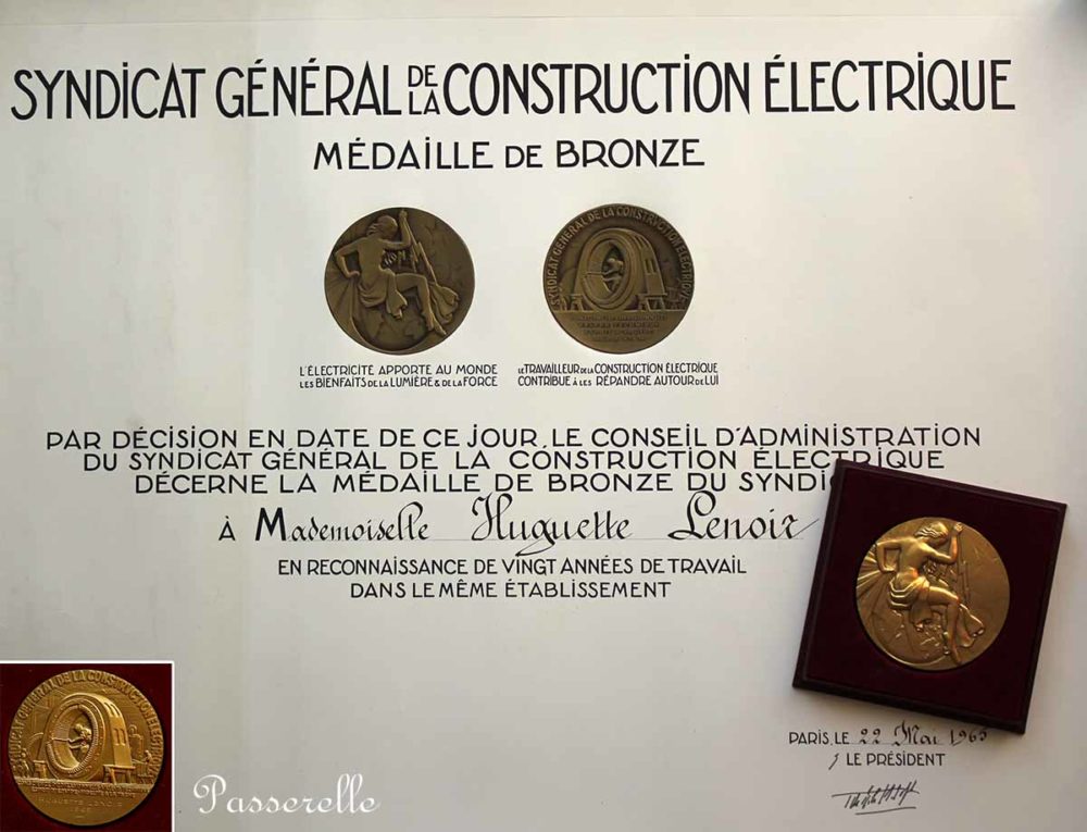 Sa première médaille lui est décernée par le Syndicat Général de la Construction Électrique, pour vingt années passées dans la même entreprise.