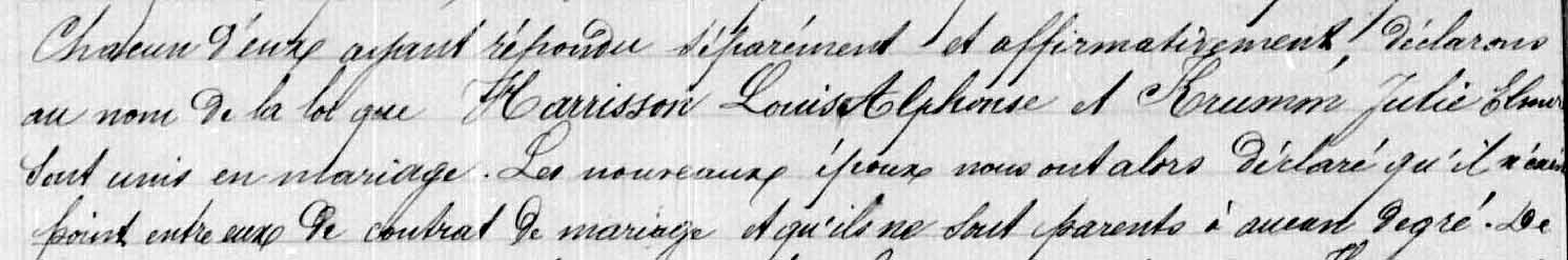 Nos jeunes amoureux durent ainsi franchir ce parcours d’obstacles avant de pouvoir enfin concrétiser leurs épousailles, presque six mois après la mort de leur bébé. Le jour du mariage, Catherine Lombard est aux côtés de sa fille mais ni Marie Louise Mathey, ni Auguste Harrisson ne se sont déplacés pour accompagner leur garçon.