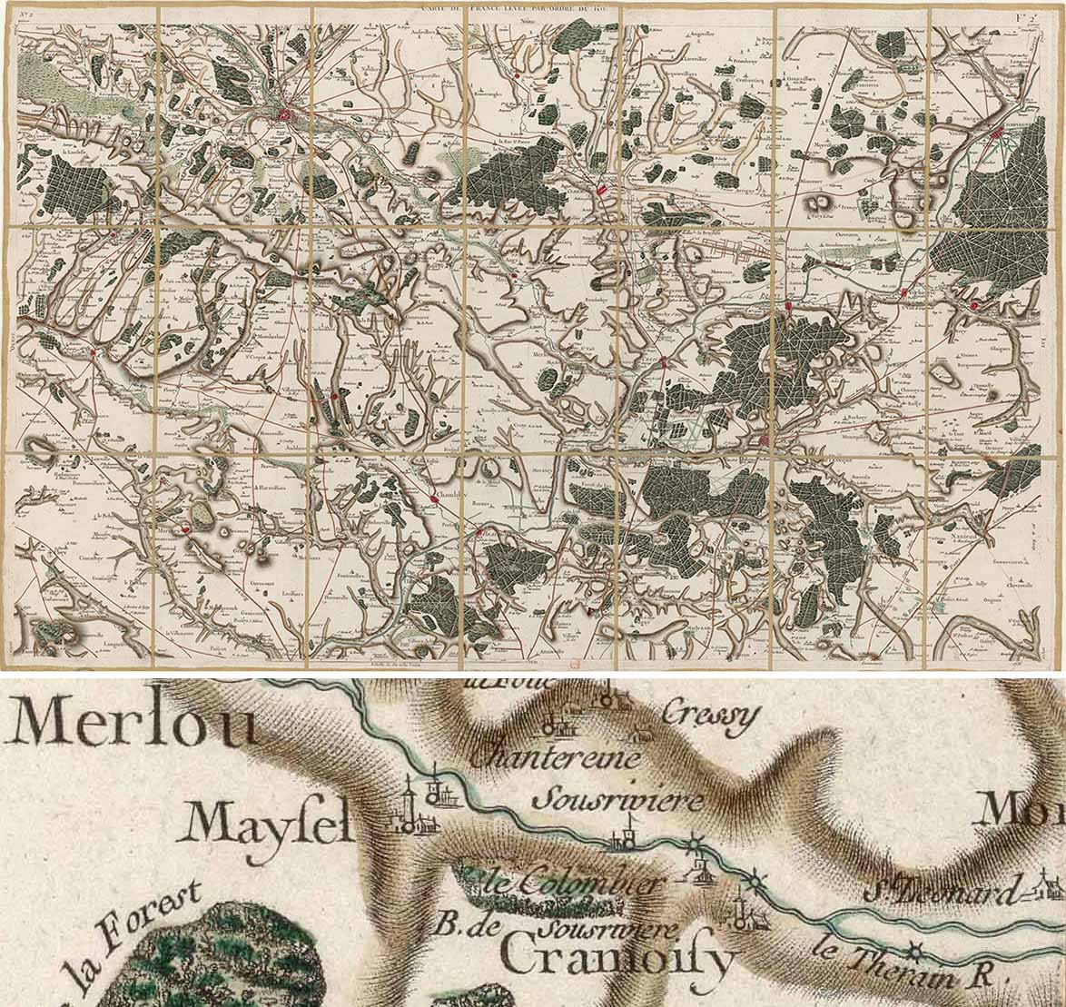 Et c’est bien sûr très intéressant de pouvoir travailler tranquillement sur nos chères cartes de Cassini. C’est dans Gallica qu’elles sont offertes avec la meilleure résolution mais -pour moi en tout cas- c’est toujours un peu un casse-tête pour localiser rapidement celle que je veux, même avec les excellents trucs de Sophie Boudarel.