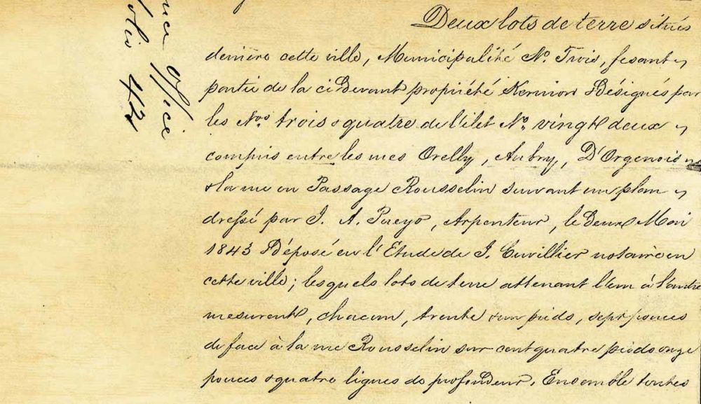 Annette et Frédéric vont donc quitter l’environnement très animé de Trémé Market pour une campagne située à deux bons kilomètres plus au nord et bien plus calme, comme le suggère sa localisation à l’acte : derrière cette ville. D’ailleurs sur les plans contemporains de l’acquisition, le lotissement de cette partie de La Nouvelle-Orléans est en cours et Rousselin doit n’être encore qu’un sentier perdu dans les herbes ; elle n’apparaîtra en effet sur ces plans, avec un véritable statut de rue, que trente ans plus tard, alors qu’on s’avance déjà vers le XXe siècle.