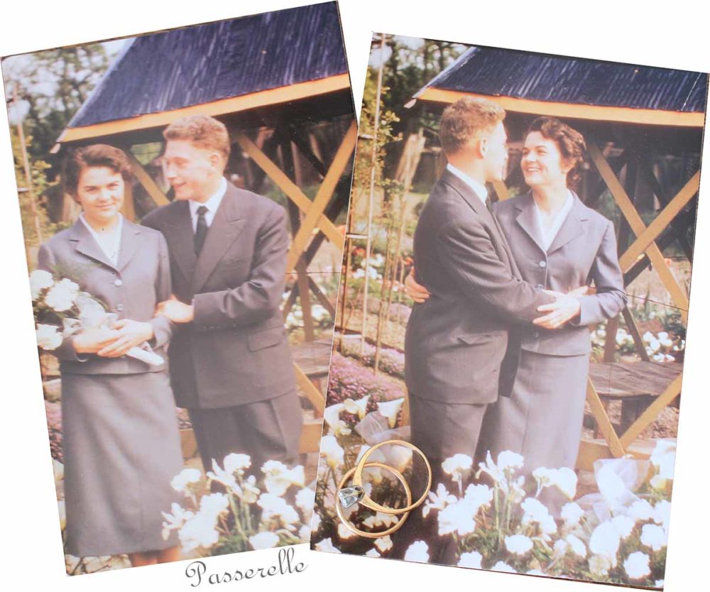 Je n’ai pas eu la présence d’esprit de les lui remettre pour qu’elle parte avec. Mais j’avoue que je suis heureuse aujourd’hui de cet oubli et d’avoir en ma possession ces deux anneaux, hautement symboliques de son histoire d’amour avec mon père.