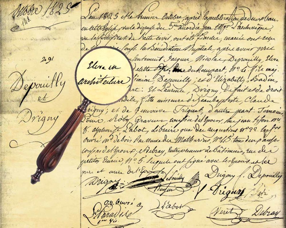 Il est encore Depouilly mais, venu d’on ne sait où, un Bussière s’est glissé dans le paraphe qu’il déploie amplement en bas de son acte de mariage. En 1833, il arrive à La Nouvelle-Orléans pour y exercer son métier et cette fois-ci, c’est la particule qui s’est détachée de son nom.